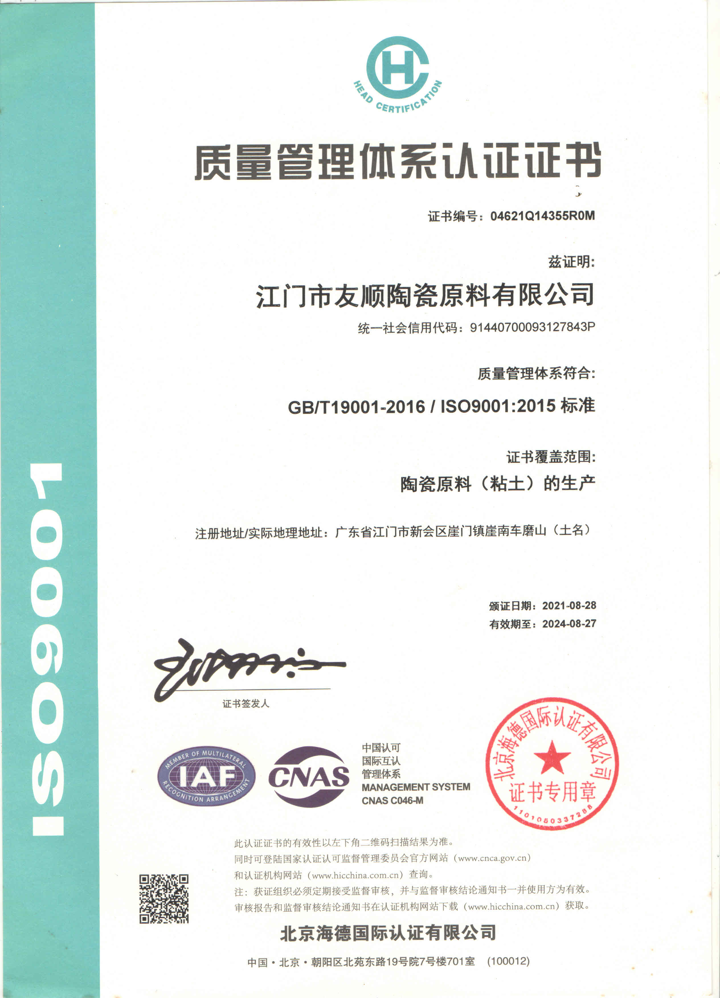 友顺新材料科技有限公司是一家专业陶瓷原料供应商,公司技术总监以三十多年从事陶瓷原料标准化的经验,吸纳日本和欧洲的精细技术,打造一支技术精良的团队,以严格的品质管理,创新的加工技术将天然原料标准化配伍,生产一系列的球土、高岭土产品,满足不同客户需求。